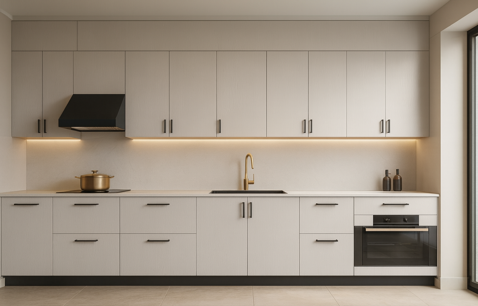 Excellent for contemporary and Scandinavian designs. Its light color and subtle texture complement clean lines and simple forms in modern kitchens, bathrooms, and office furniture, providing warmth without overwhelming the space.