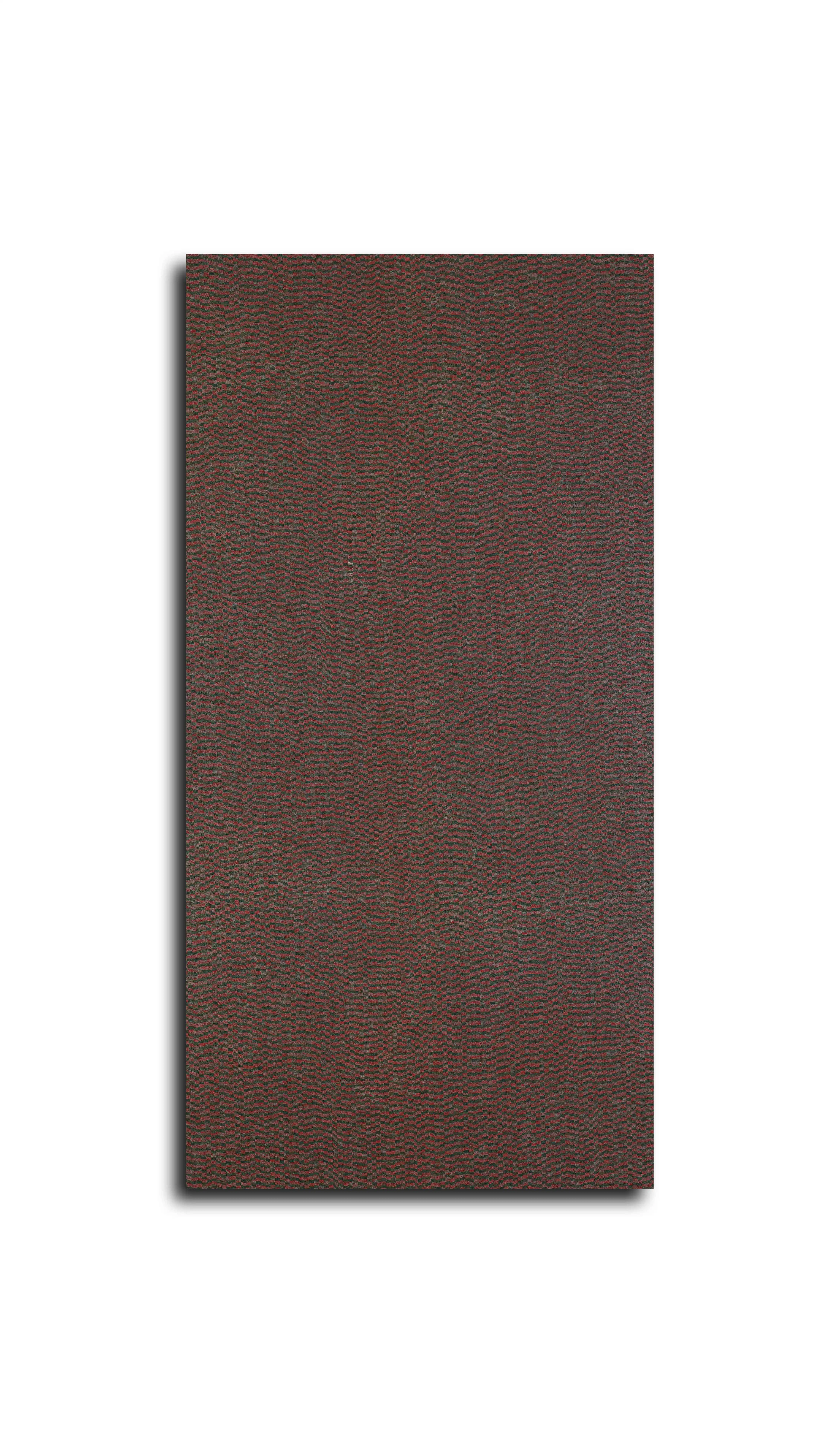 | Description | A dark, complex textile or embossed sheet with a fine, undulating wave pattern (moire effect), featuring interwoven dark brown/green and muted red tones |