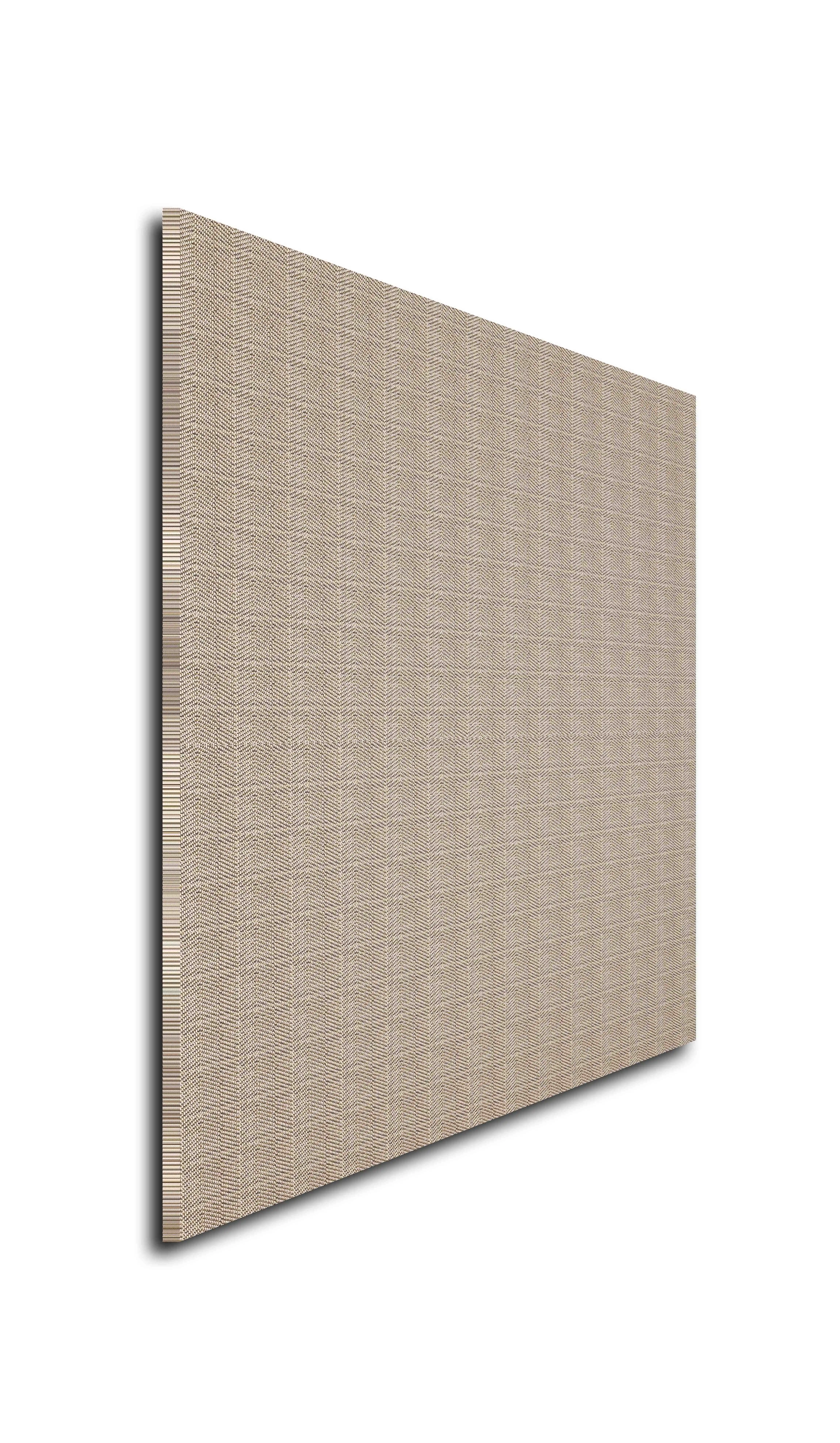 The image displays a uniform, rectangular sample with a grid-like, multi-directional thread pattern and a slight shadow effect