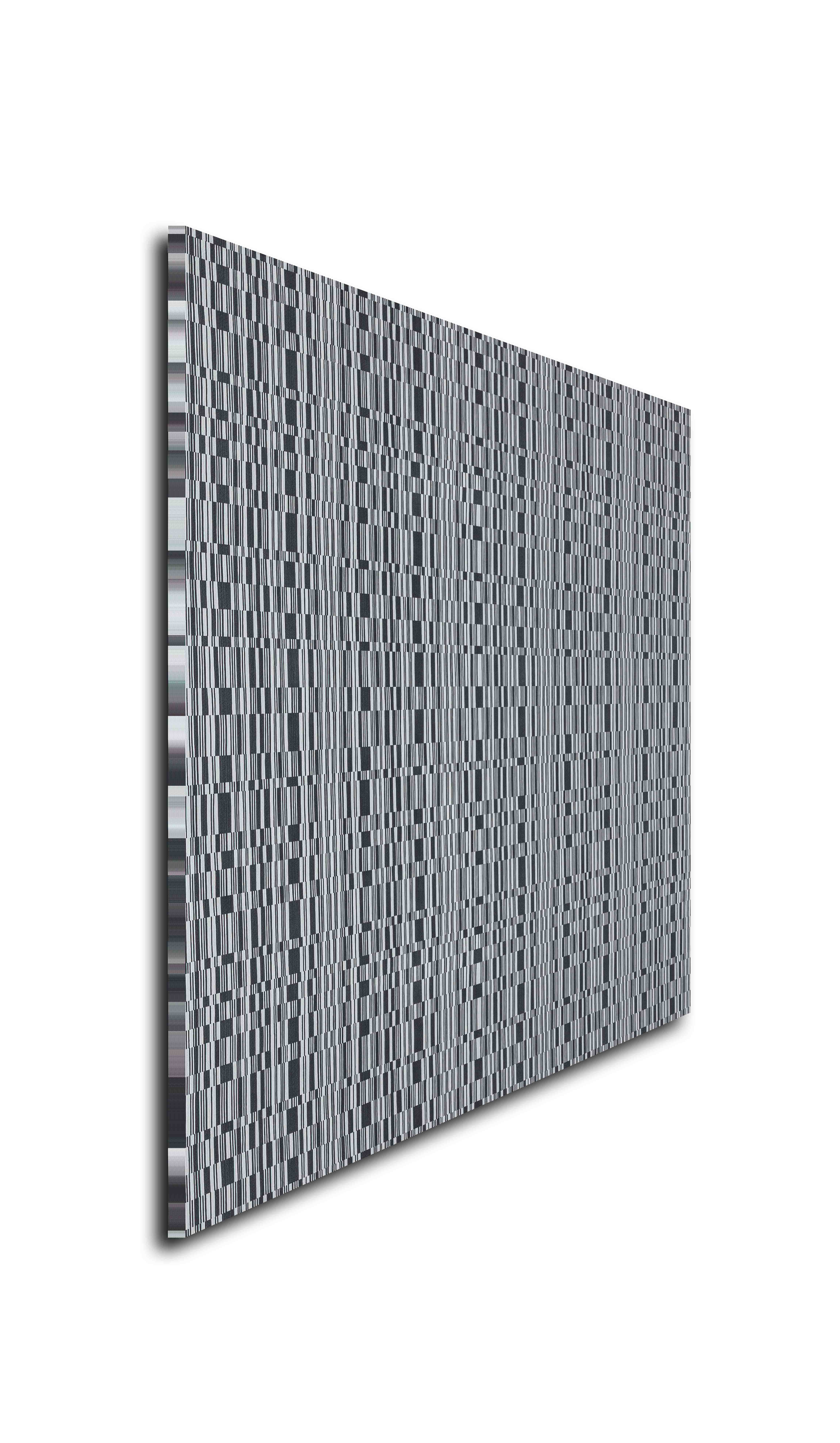 | Description | A bold, contemporary laminate featuring a graphic pattern of monochrome vertical lines, reminiscent of digital static or a modern barcode. Its high-contrast design and subtle woven texture create a dynamic and architectural feel, perfect for making a strong statement in modern, tech-forward interiors |