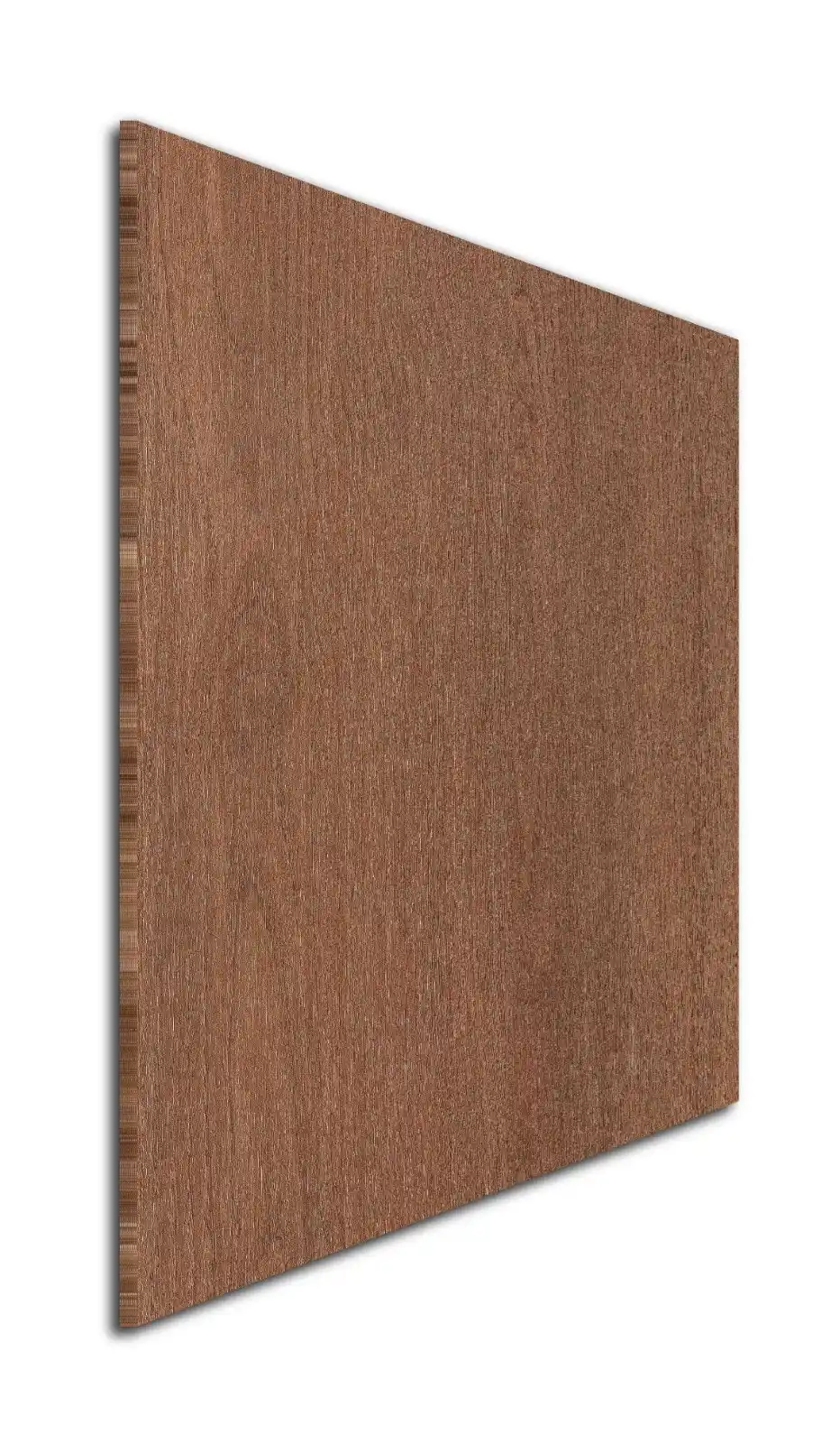 | Description | A flat sheet material exhibiting a medium-dark reddish-brown color with a straight grain pattern, suggesting a classic veneer or laminate design |
