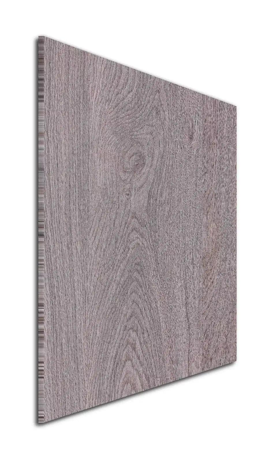 | Description | A contemporary wood panel featuring a faded, desaturated grey-brown color palette with a prominent, classic straight grain structure and subtle knot detail |