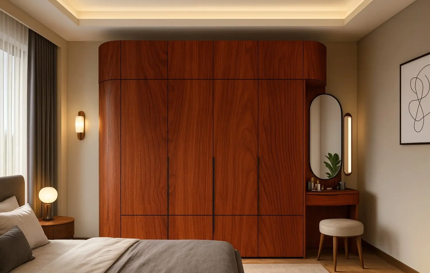 Perfect for traditional or classic interiors, adding a sense of luxury and warmth. It suits executive office furniture, library shelving, or formal living room cabinetry