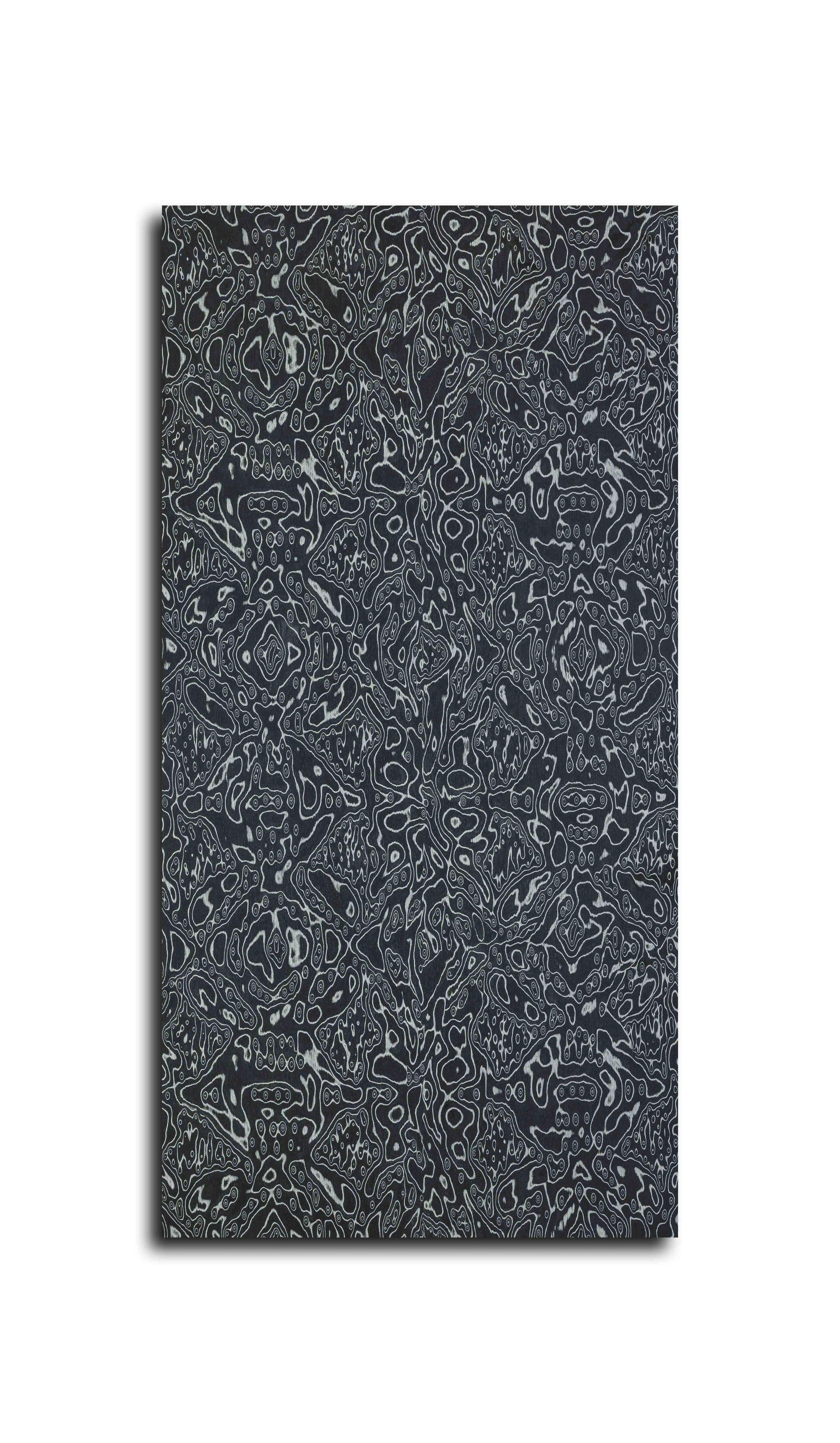 | Color Description | Jet black base with sharp, defining intricate lines in stark white, silver, and cool grey tones |