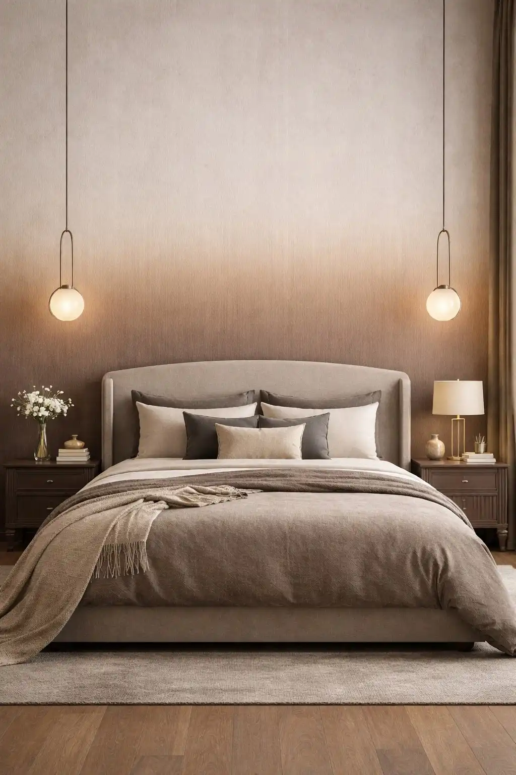 | Color Description | A vertical gradient shifting from light champagne and soft copper tones at the top to a rich, dark slate or espresso brown at the bottom |