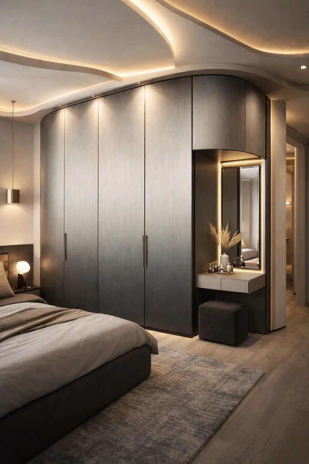 A sophisticated play of light and shadow; the vertical grain enhances height while the gradient adds depth and movement