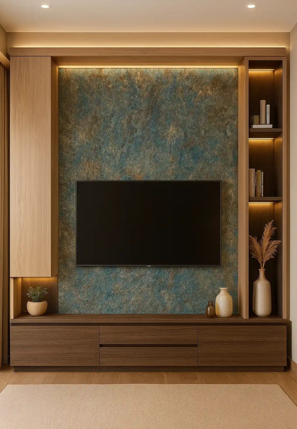 | Description | A multi-toned, weathered surface featuring a deep teal/blue-green patina, layered over a rustic, earthy brown-orange base, mimicking aged metal or stone |
