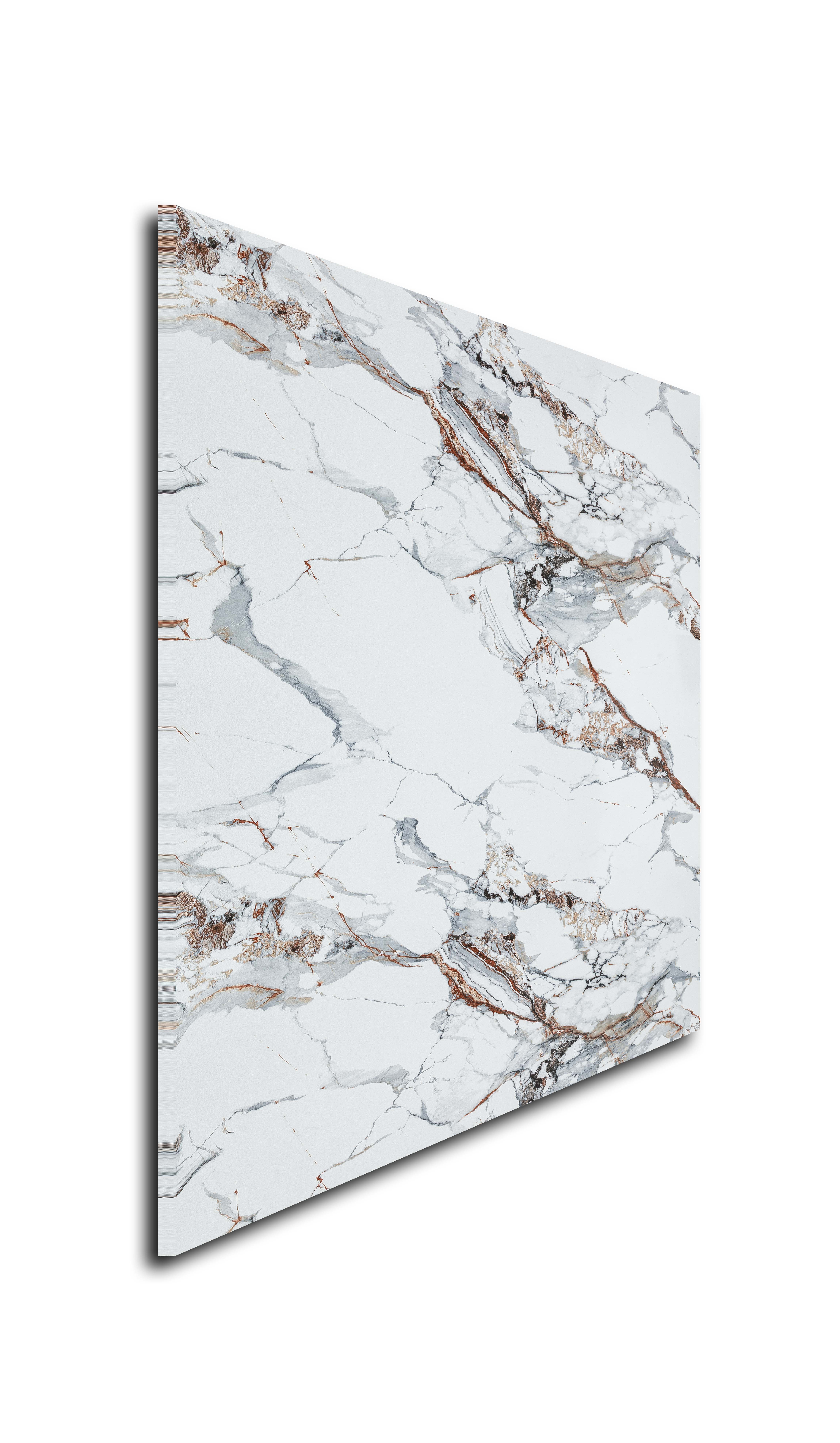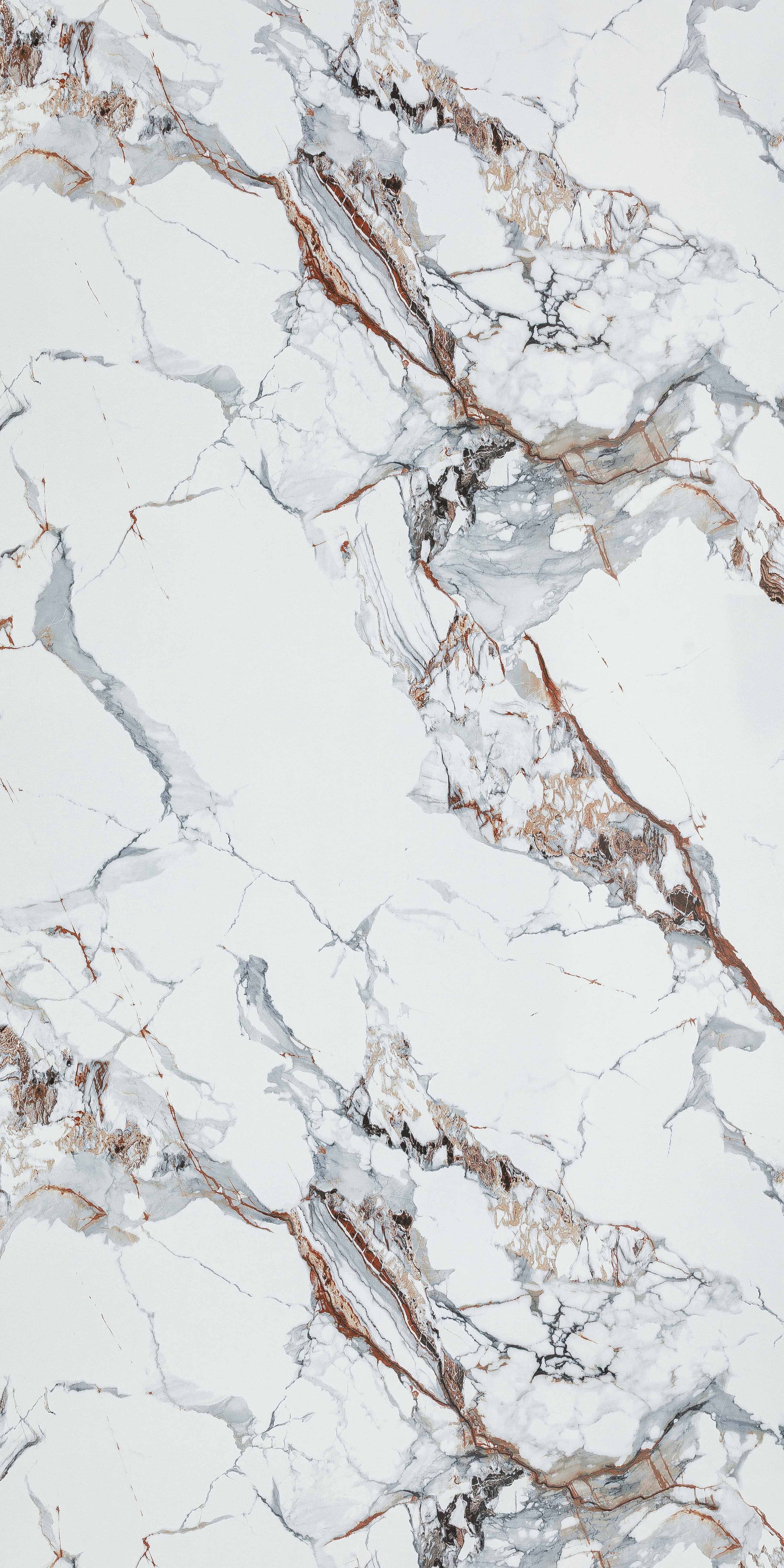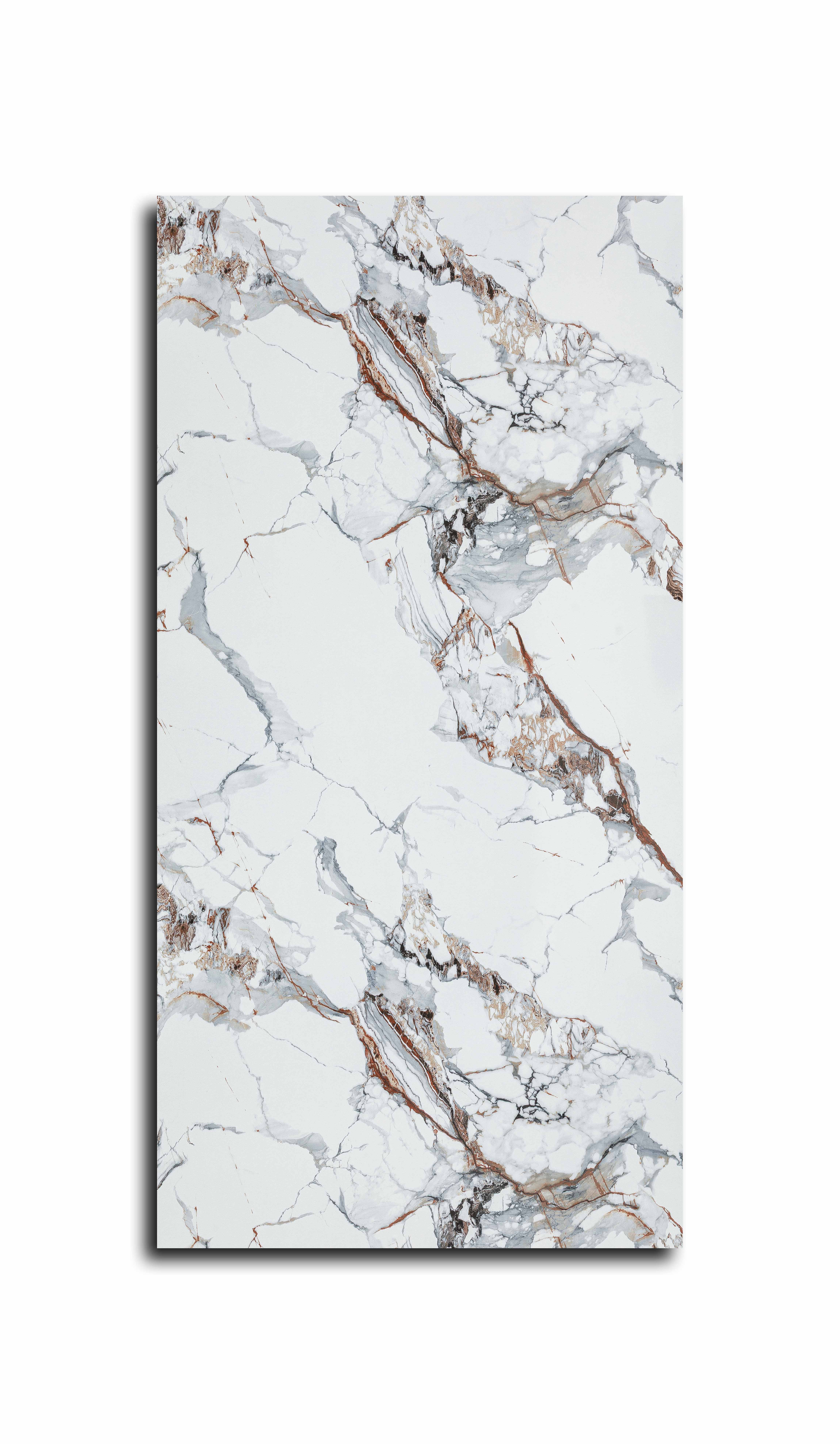 | Description | High-contrast white base with prominent, branching veining in russet/gold, grey, and brown. It offers a luxurious, classic marble aesthetic |