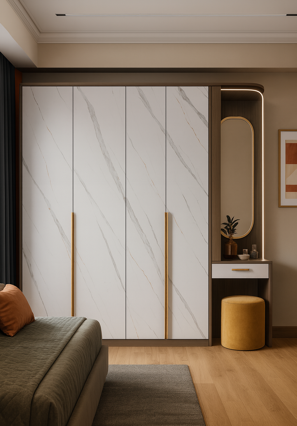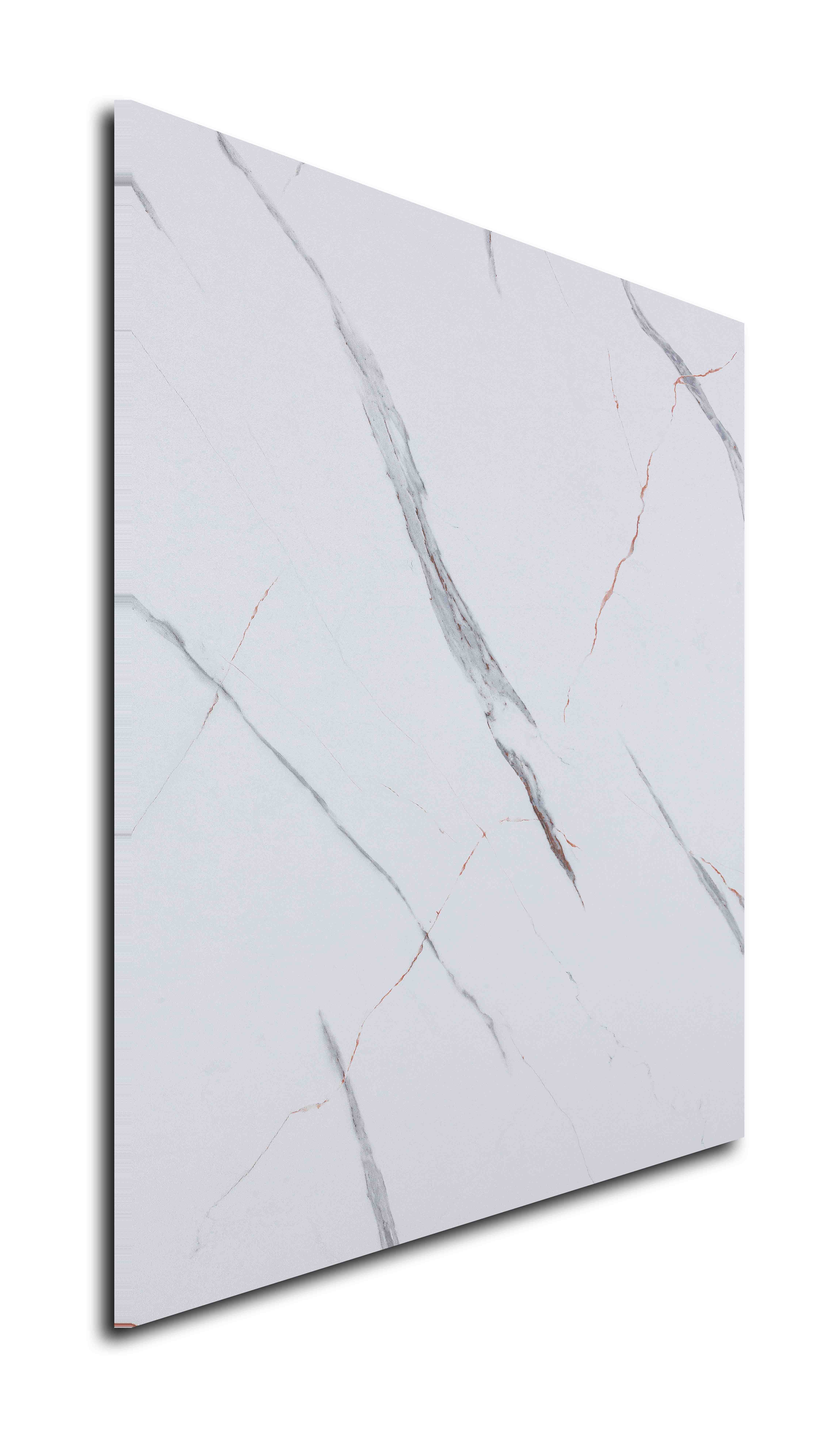 | Description | High-definition replica of Calacatta marble with a bright white base, striking grey veining, and warm copper or gold accents. Offers luxury and durability. |