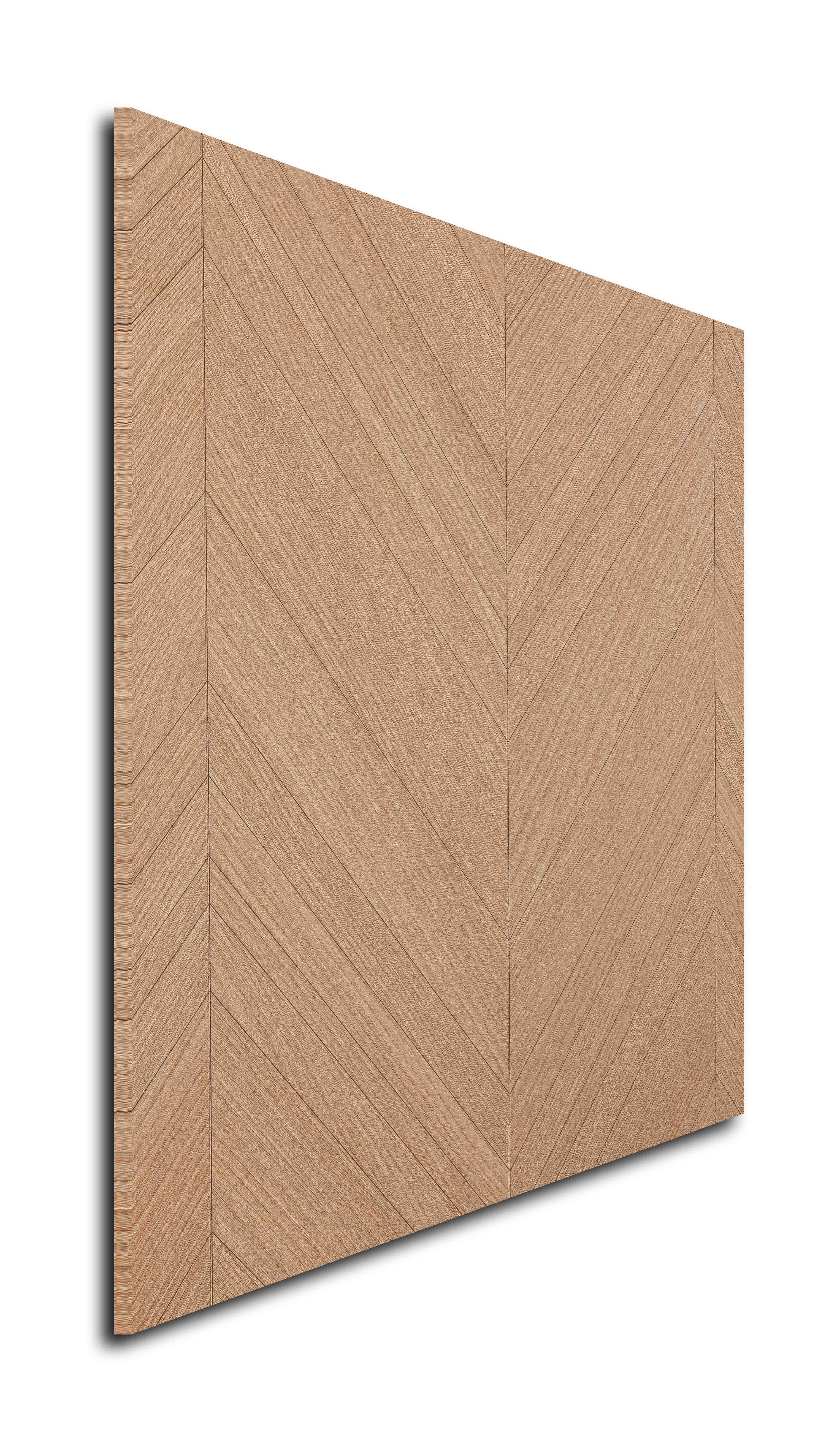 Symmetrical, repeating "V" pattern with a clear seam in the center. The grain lines are parallel and light.