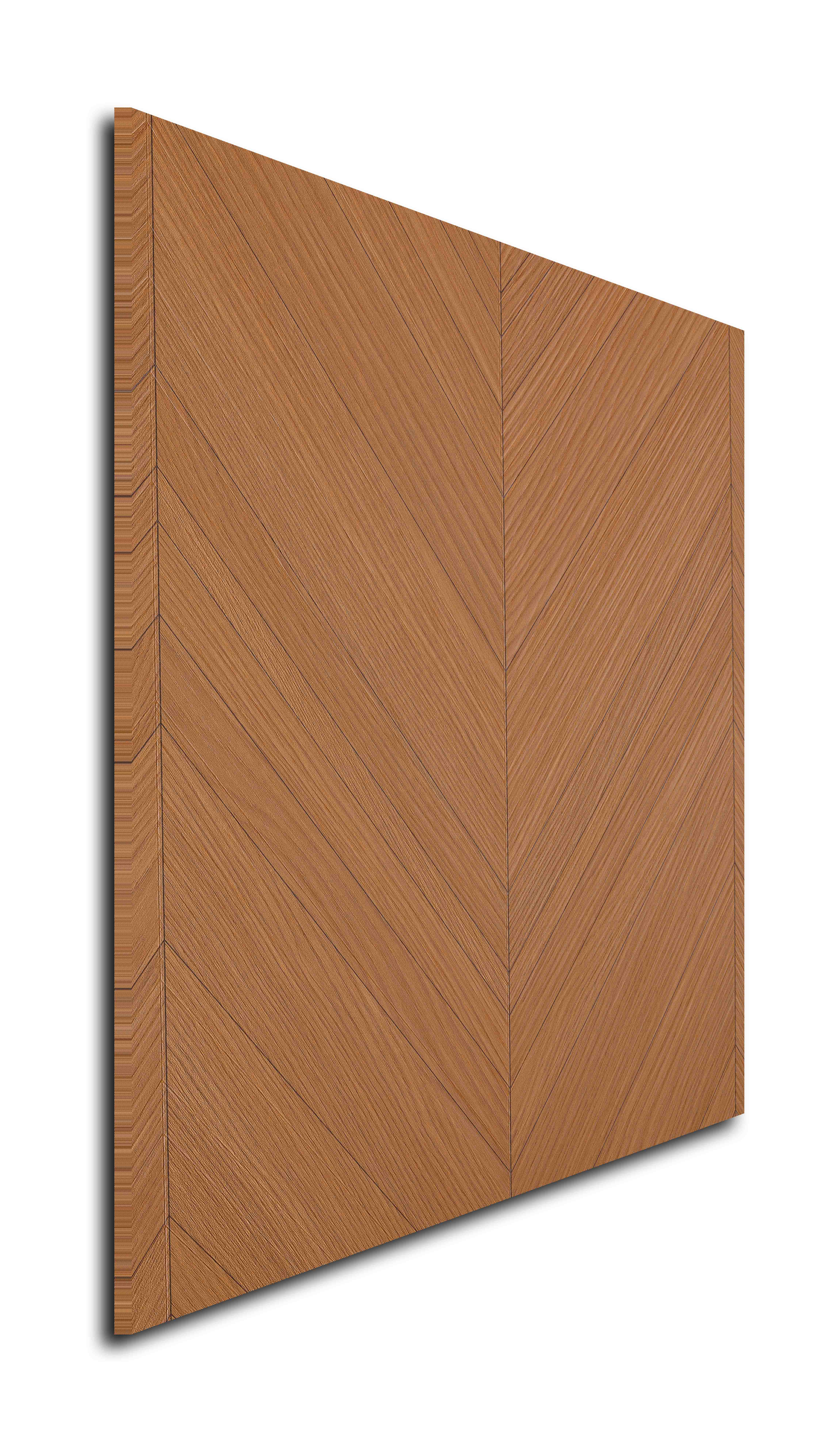 | Description | A rich brown wood-look panel featuring a distinct V-shaped or chevron geometric grain pattern, creating a striking symmetrical design. |